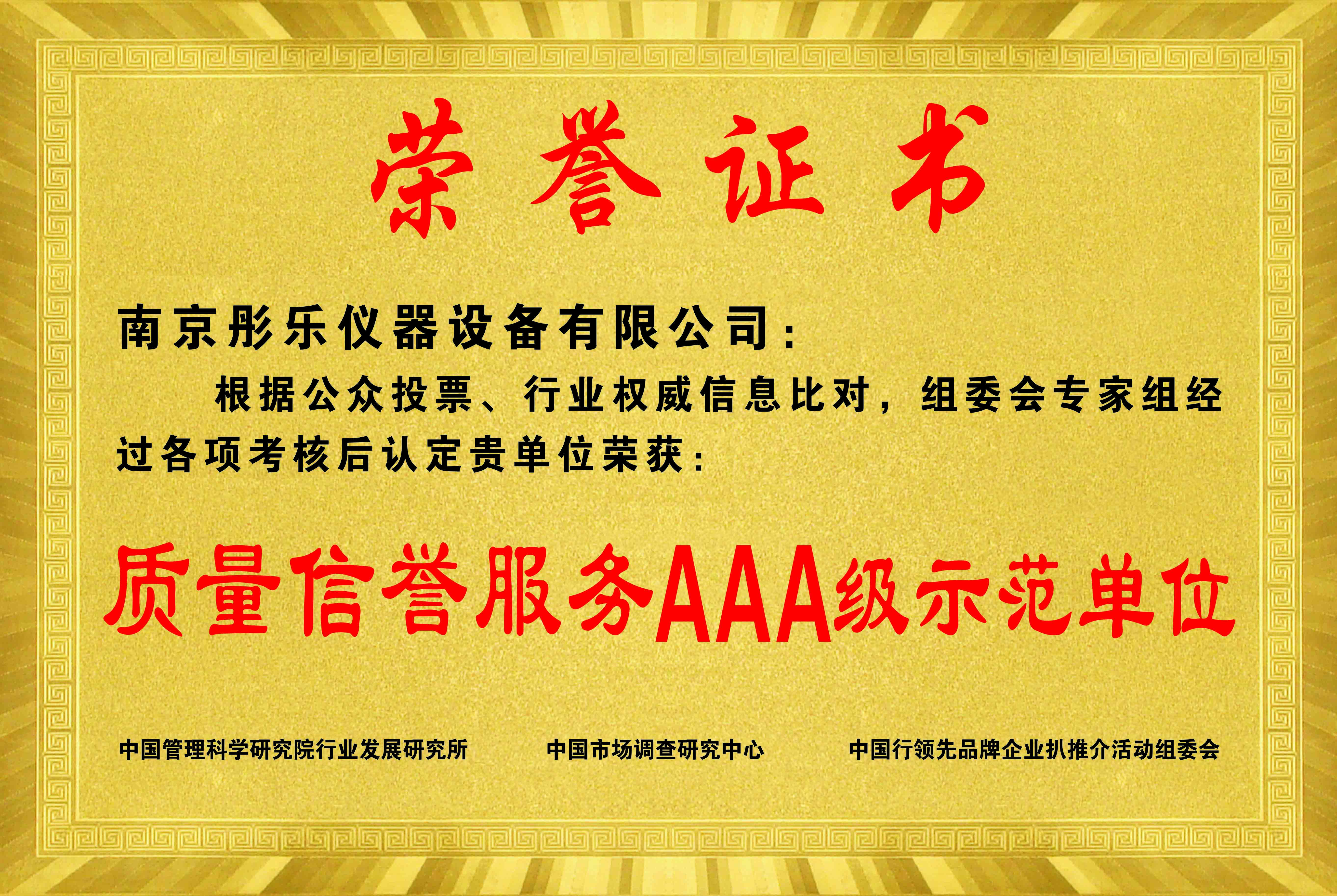 質(zhì)量信譽(yù)服務(wù)AAA級示范企業(yè)